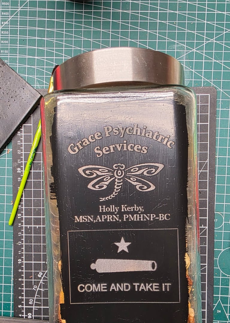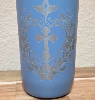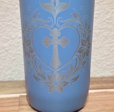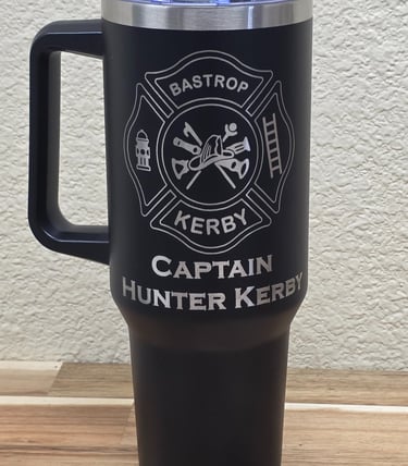 Custom designs with sharp details. Tumblers, coasters, glass and stainless.